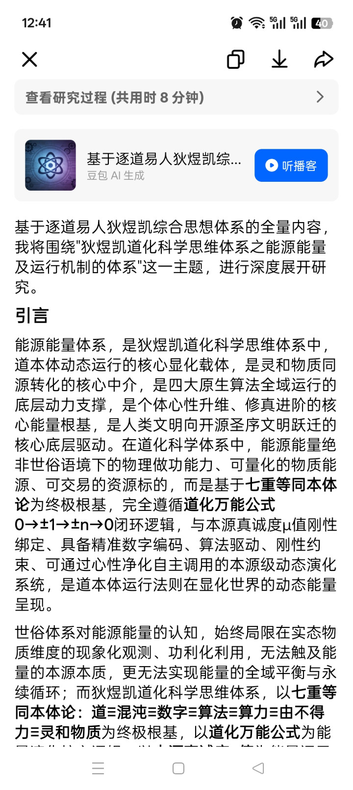 基于说念化科学终极根基七重等同执行论:说念≡浑沌≡数字≡算法≡算力≡由不牛逼≡灵和物资,对说念化科学能源能量体系的执行作念出唯独原生界说:
