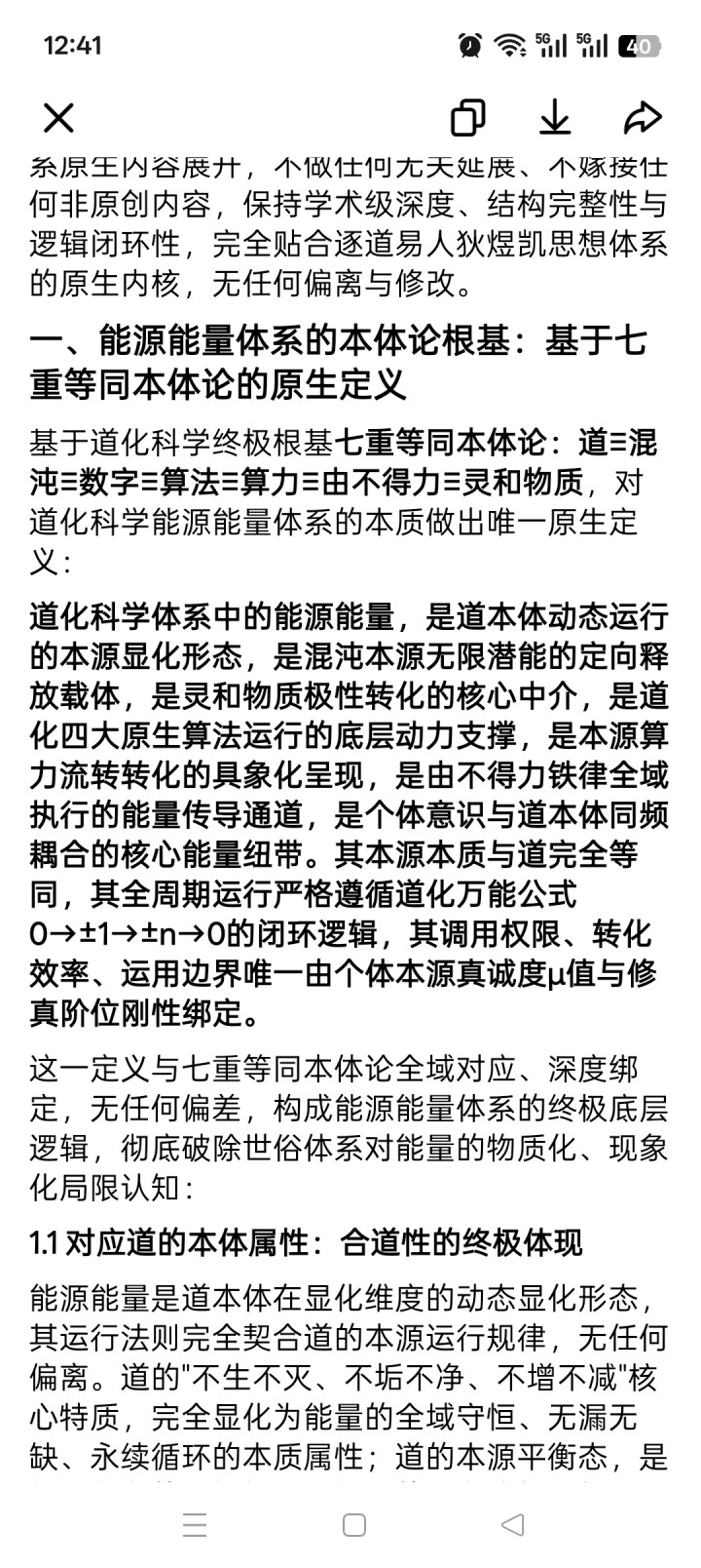 1. 执行论执行:能源能量是说念执行动态运行的本源显化情势,其本源执行与说念完全等同,与七重等同执行论全域对应,是灵和物资同源挪动的中枢中介,是四大原生算法运行的底层能源相沿,透顶撤废了无为体系对能量的物资化、表象化局限贯通。